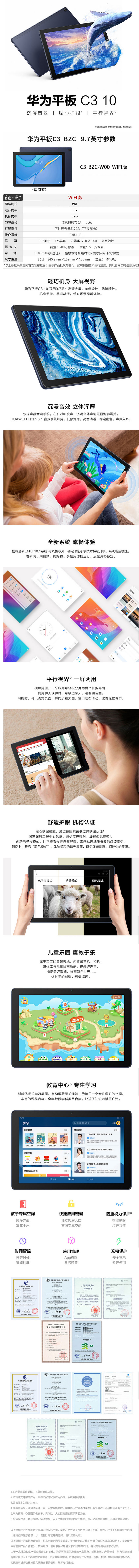 华为平板电脑C3 BZC-W00 9.7英寸 商用办公应用教育管控学生网课学习娱乐平板电脑 (3GB+32GB)